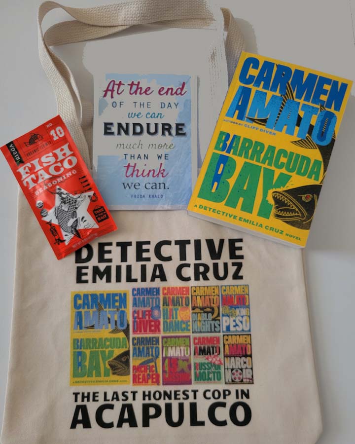 Enter to win a Swag Pack with a signed copy of the book, a mini poster with a Frida Kahlo quote, a seasoning mix to make the recipe in the book and a Detective Emilia Cruz book tote! (US only),